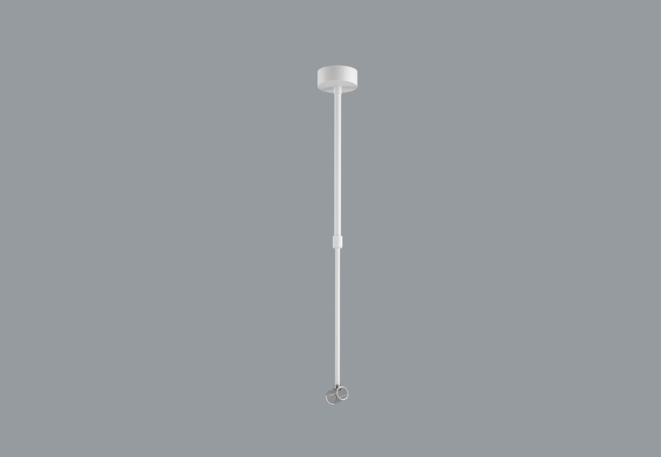 Ceiling base D=80mm with a horizontal bracket and a rigid adjustable suspension L=750-1500mm, white RAL9016