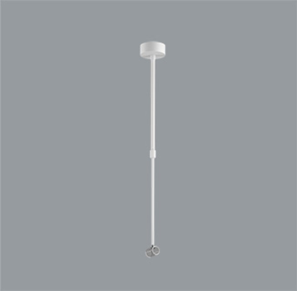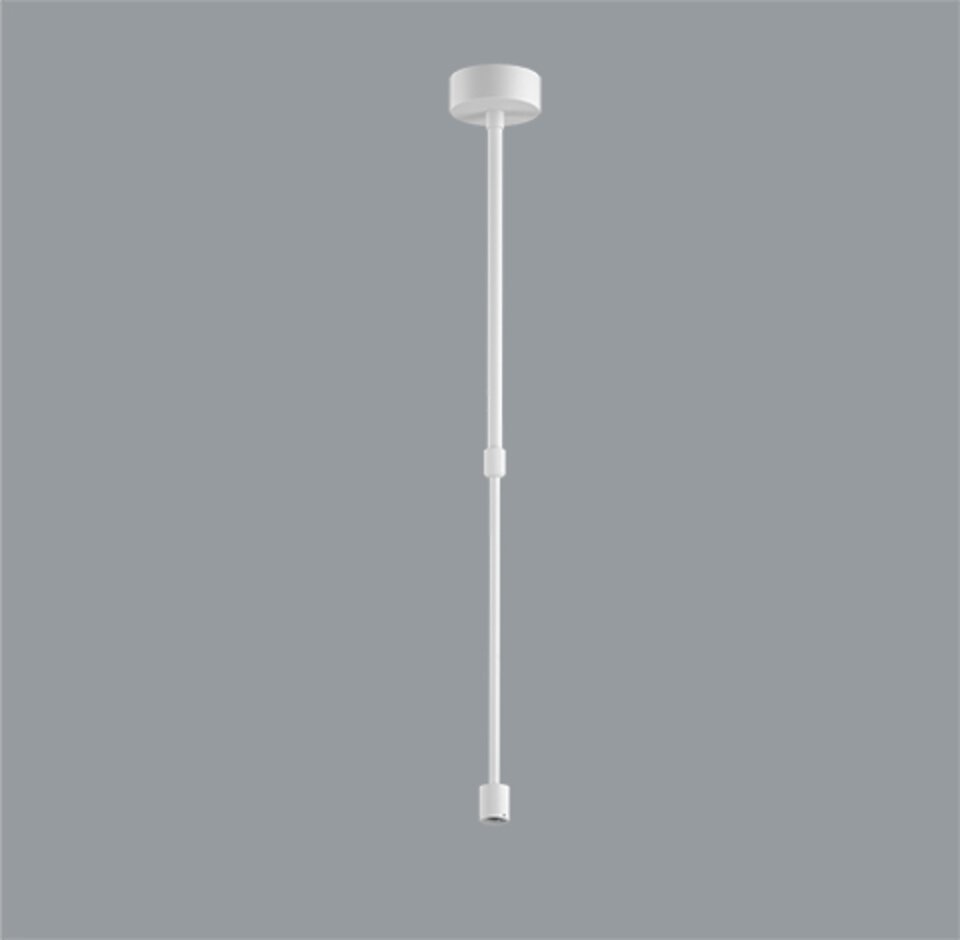 Ceiling base D=80mm with a vertical power supply bracket and a rigid adjustable suspension L=750-1500mm, white RAL9016