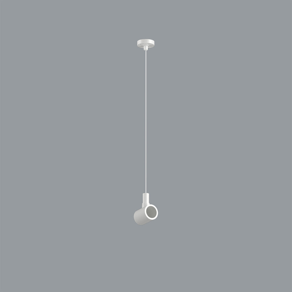 Suspension with a horizontal white bracket D=25mm and a white cable L=1500mm, ceiling installation, white RAL9016